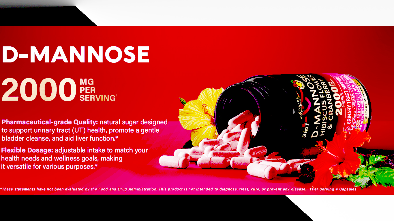 D-Mannose 2000mg with Cranberry & Hibiscus – Clinically Tested Strength for Urinary Tract Health – Supplement for Women – Bladder, Liver & Microflora Support – Made in USA – Vegan, 120 Capsules 120 Count (Pack of 1)