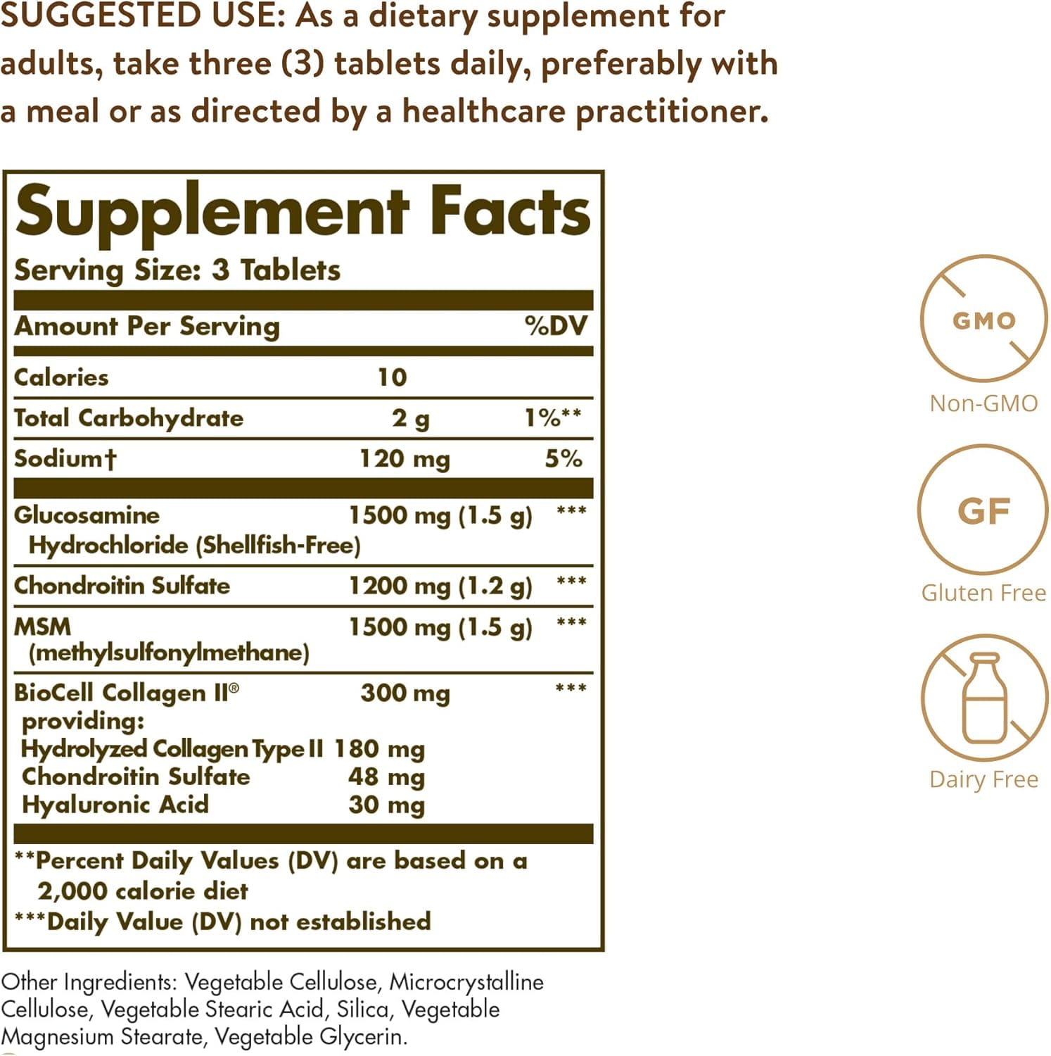 Solgar, Glucosamine Hyaluronic Acid Chondroitin Msm, Shellfish-Free 60 Tabs